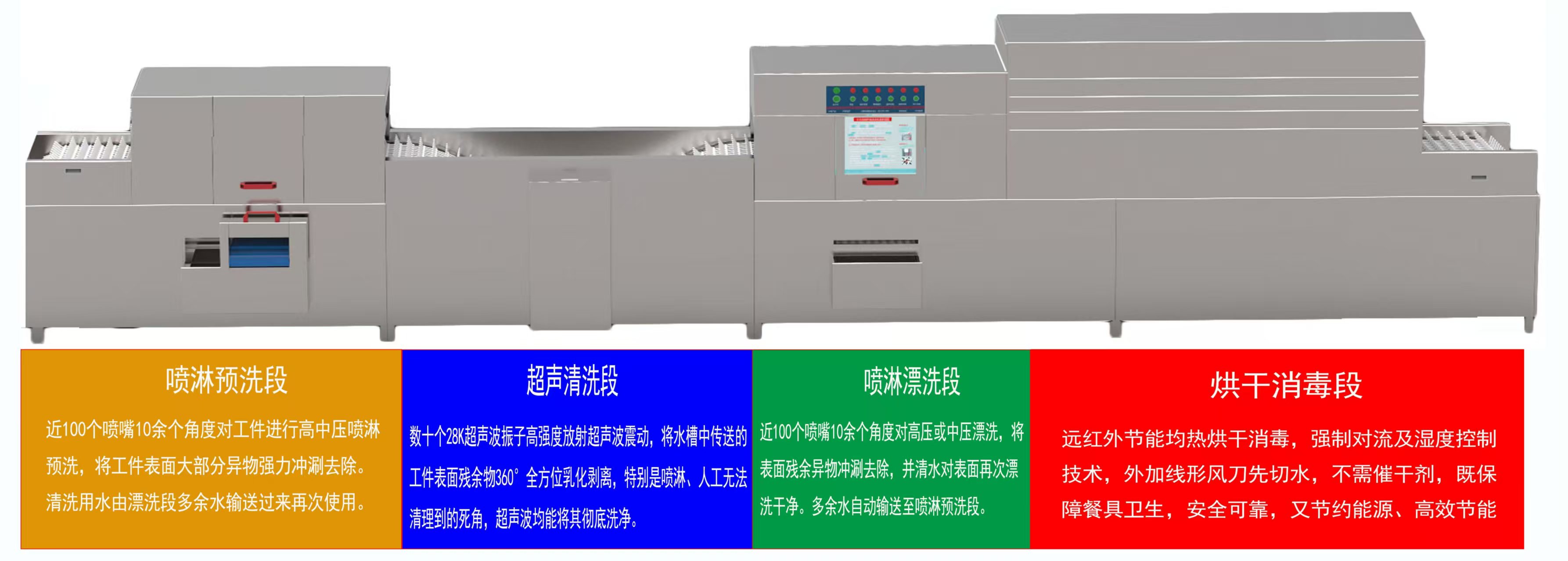全自動超聲波洗碗機:為中央廚房量身打造的高效 上超全自動超聲波洗碗機核心清洗流程:為您帶來的運營價值:我們致力于為團體食